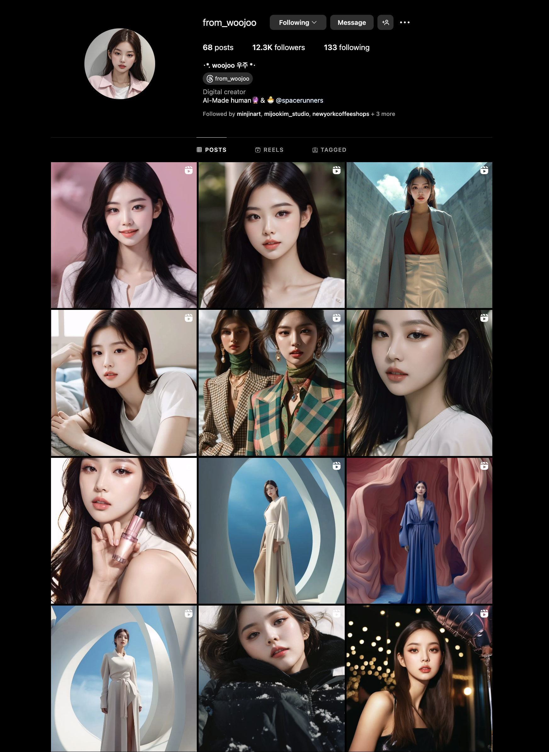 Created AI-generated virtual human and Influencer at Space Runners. I’ve been exploring ways to integrate AI into our 3D design as a visual artist.